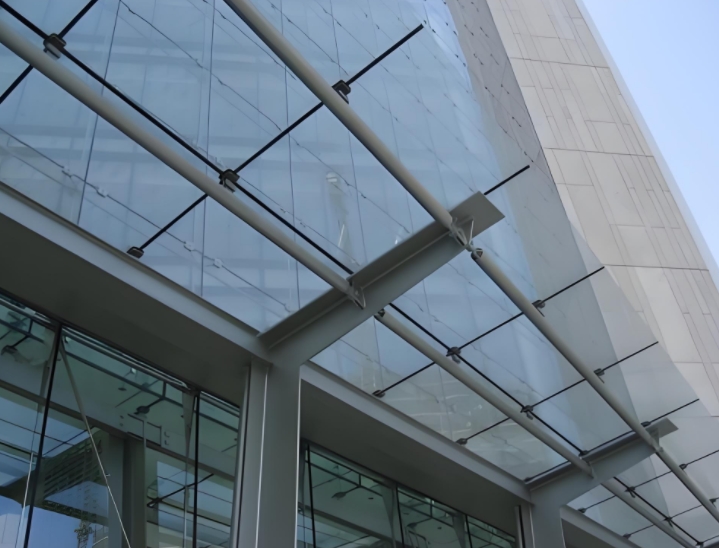 耐候性材料:如采用不锈钢、镀锌钢板等,说明广州钢结构雨披可能用于户外环境,具有较长的使用寿命和耐腐蚀性。